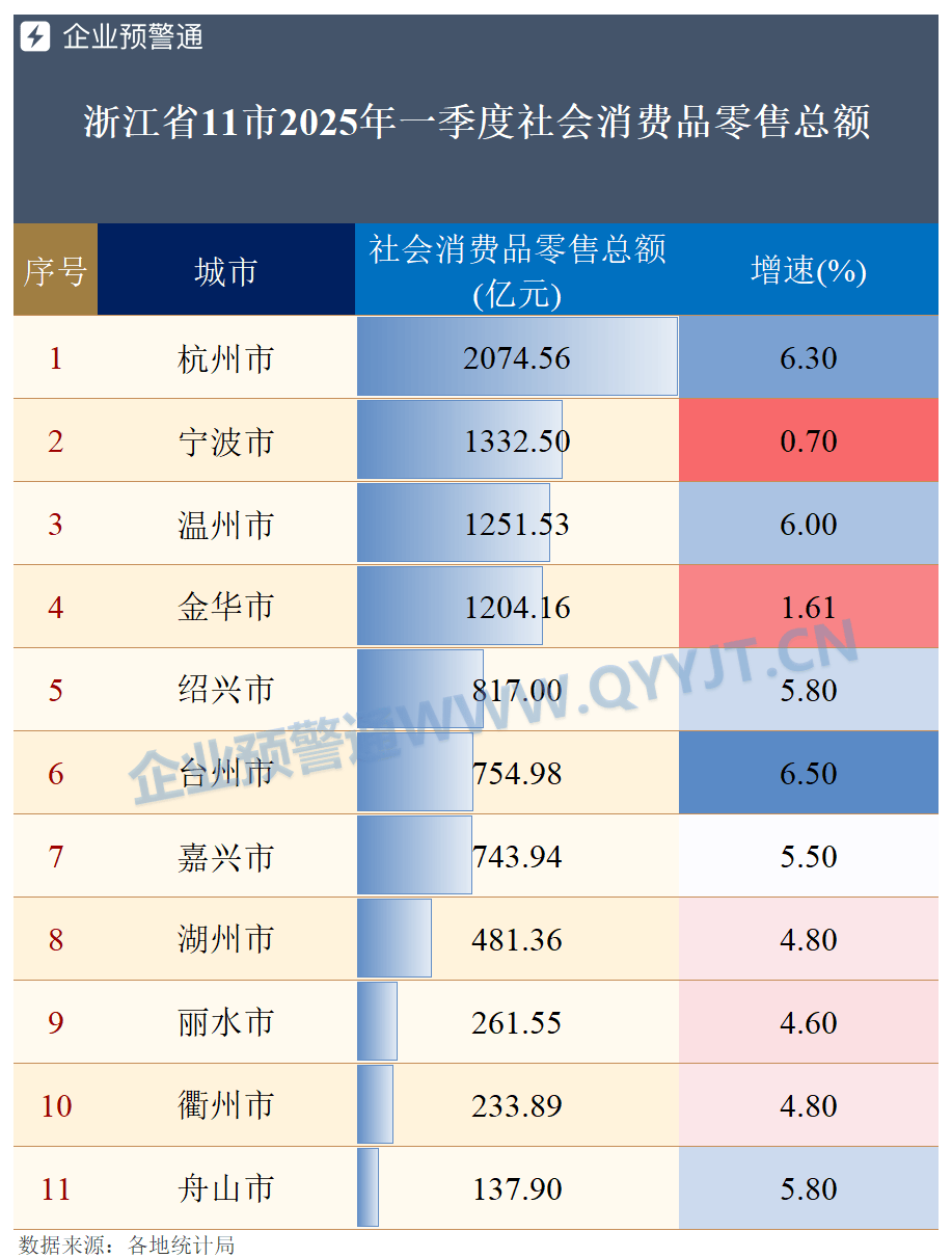 2025年一季度,浙江省经济呈现出稳健向好、进中提质的优良成长态势。全省实现地域出产总值22,300。00亿元,同比增加6。0%。总量冲破2。23万亿元,继续稳居全国第四。正在各城市一季度经济总量表示上,杭州、宁波、温州别离以5715。43亿元、4420。50亿元、2403。68亿元稳居全省前三。此中,杭州2025年一季度P总量取客岁同期比拟,添加了603。53亿元,增量领跑全省;宁波冲破4千亿元大关,较客岁一季度添加了428。25亿元。值得关心的是,金华市正在经济成长中实现了严沉冲破,P总量超越台州,全省排名由客岁的第7名跃升至第6名。其P增量高达230。63亿元,取温州278。47亿元的增量差距较小,增量排名更是位居全省第四。